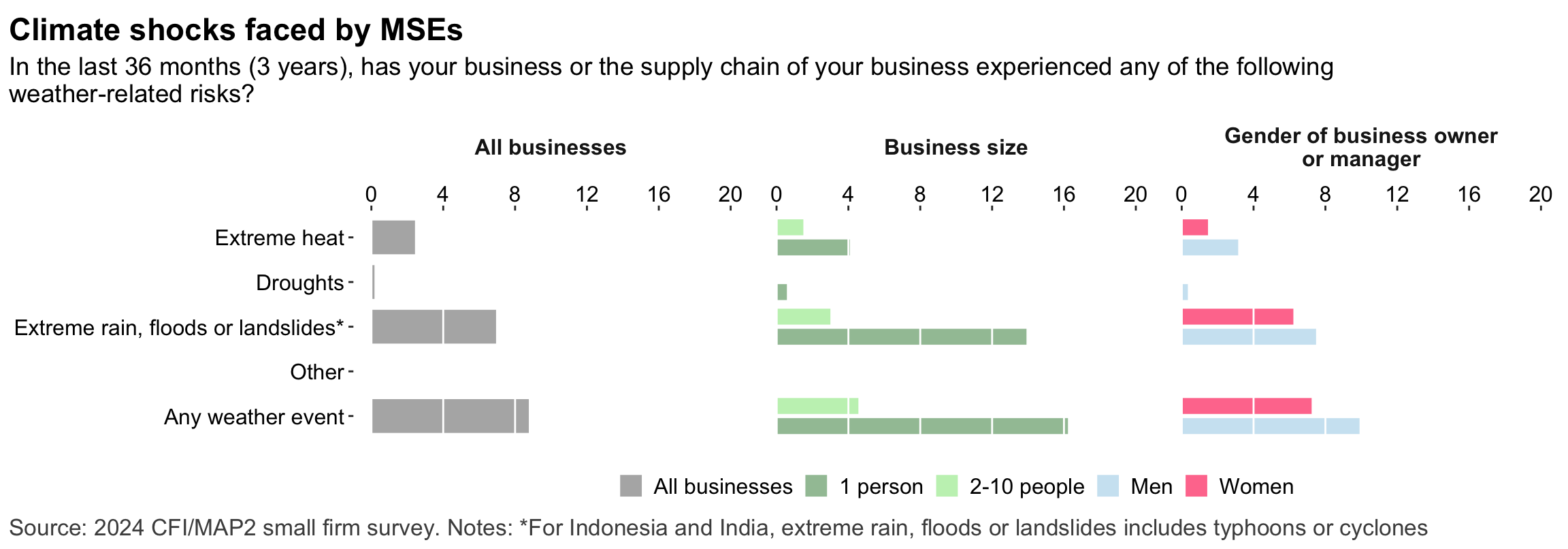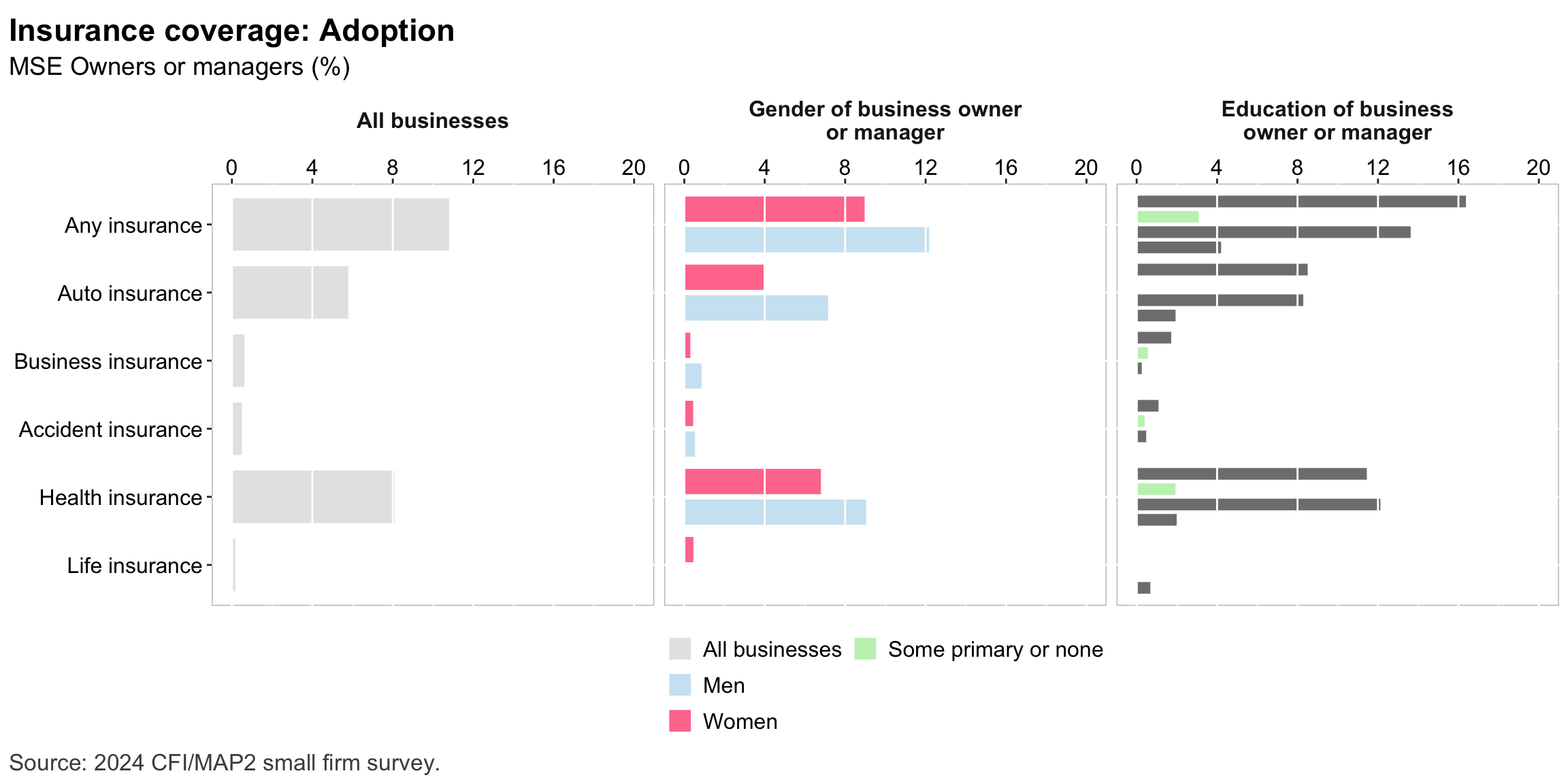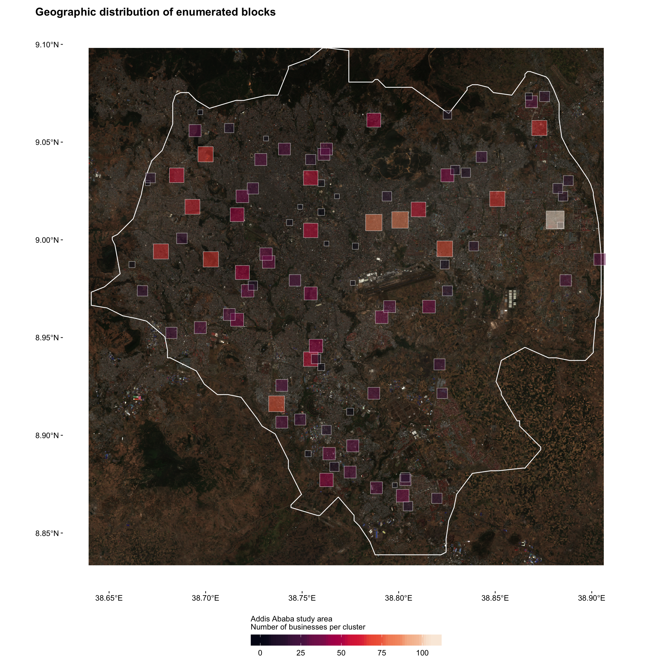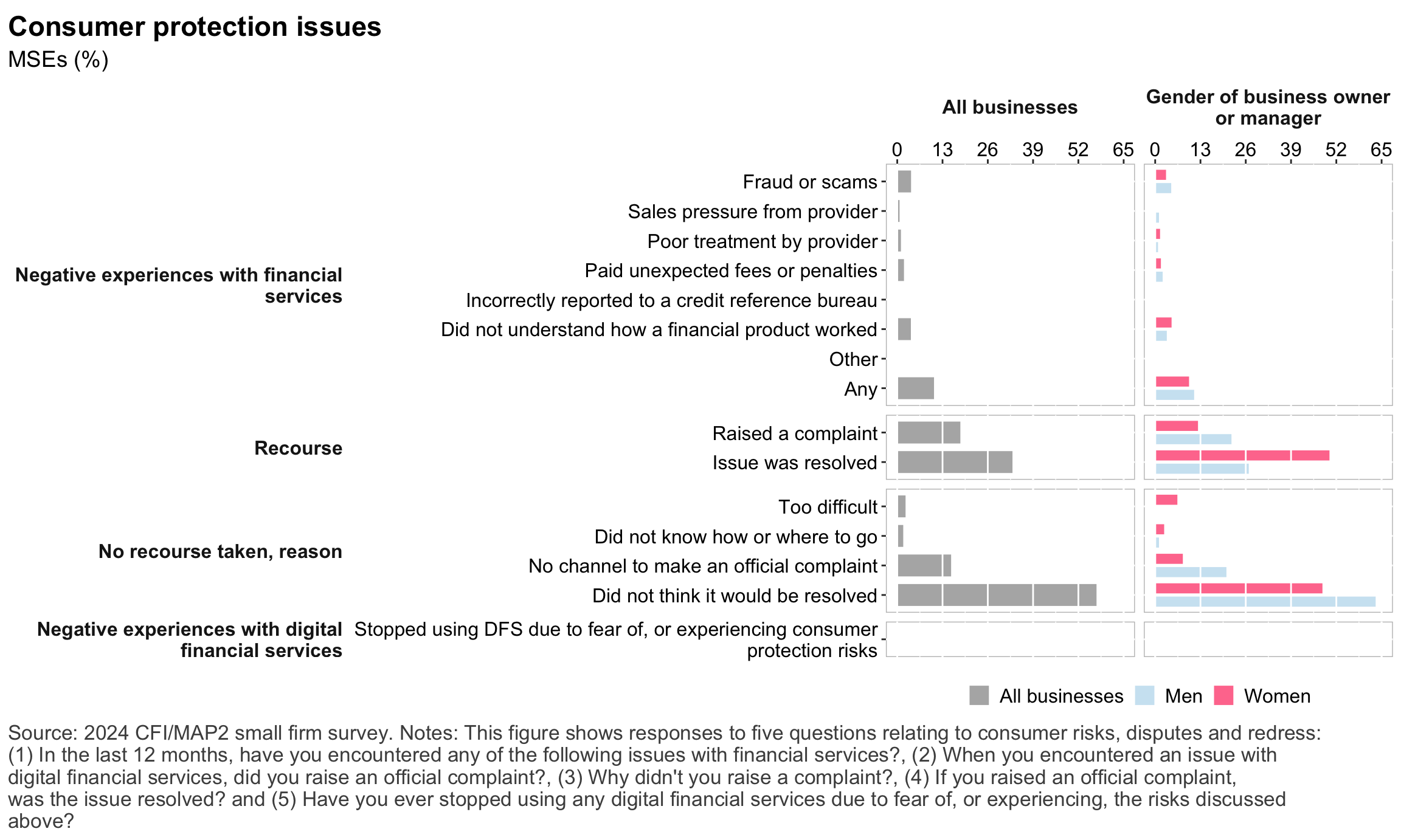 Figure 1: Geographic distribution of enumerated blocksFigure 2: Estimated business population by size and sectorFigure 3: MSE sample characteristicsFigure 4: MSEs by sector of productionFigure 5: MSE revenues and productivityFigure 6: Changes in MSE outcomes in past yearFigure 7: Gender composition of MSEs by sise and sectorFigure 8: MSE owner characteristicsFigure 9: Pyschographic characrteristics of SME owners or managers, by genderFigure 10: Correlation between owner’s motivations, goals and attitudes to riskFigure 11: Correlation between owner’s motivations, goals and attitudes to riskFigure 12: Relationship between owner’s gender and motivations, goals and attitudes to riskFigure 13: MSEs and codependence with owner’s householdFigure 14: Access to connectivity and devicesFigure 15: Predictors of digital technology adoptionFigure 16: Digital technology adoption by use caseFigure 17: Depth of digital technology adoptionFigure 18: Digital technology adoption factorsFigure 19: Relationship between internet-connectivity and firm-level labor productivityFigure 20: Relationship between digital technology and firm-level labor productivityFigure 21: Relationship between digital technology adoption and firm-level labor productivityFigure 22: Relationship between breadth of digital technology adoption and firm-level labor productivityFigure 23: Relationship between digital technology and financial resilienceFigure 24: Relationship between digital technology adoption and financial resilienceFigure 25: Financical accounts and savingsFigure 26: Merchant paymentsFigure 27: Demand for creditFigure 28: Barriers to creditFigure 29: Impacts of digital financial servicesFigure 30: Insurance usageFigure 31: Relationship between financial services and firm-level labor productivityFigure 32: Relationship between financial services and financial resilienceFigure 33: Challenges with loan repaymentFigure 34: Consumer protection issuesFigure 35: Risks: GeneralFigure 36: Risks: ClimateFigure 37: Risks: ImpactsFigure 38: Financial resilienceFigure 39: Other dimensions of business resilienceFigure 40: Resilience capital