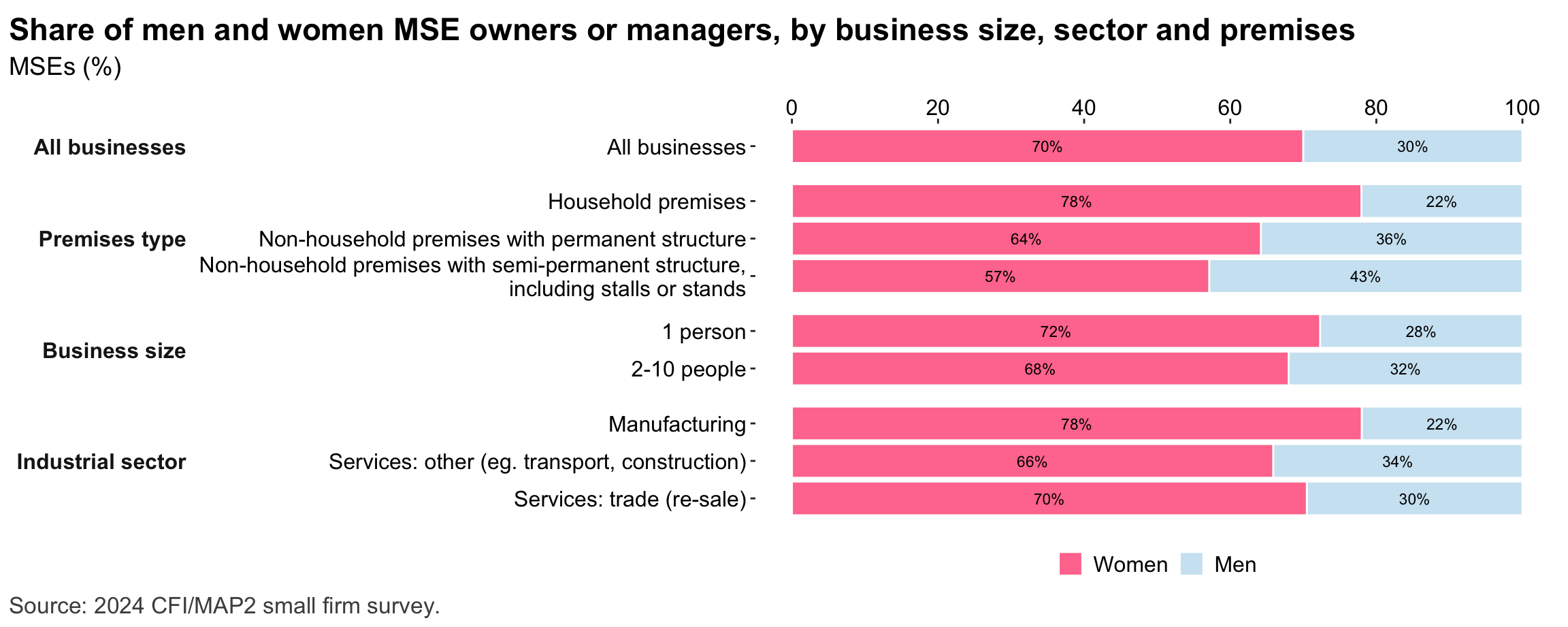 Figure 7: Gender composition of MSEs by sise and sector