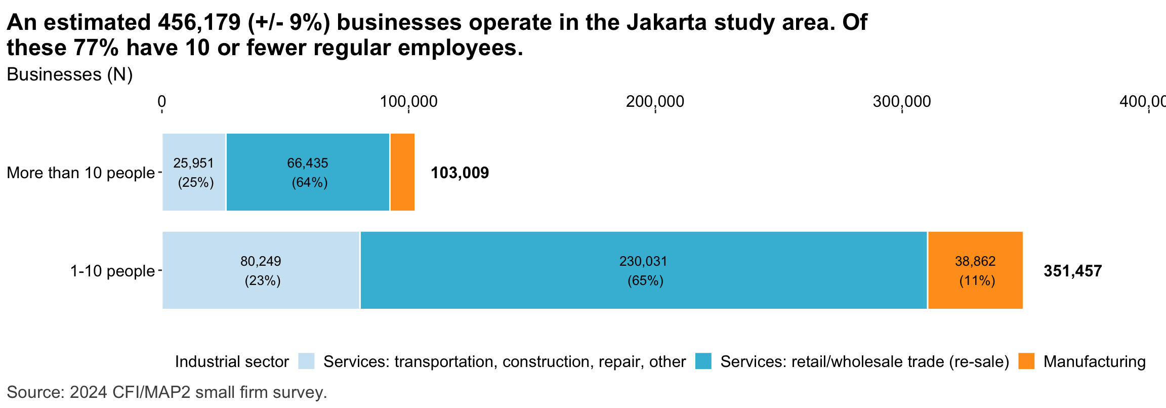 Figure 2: Estimated business population by size and sector
