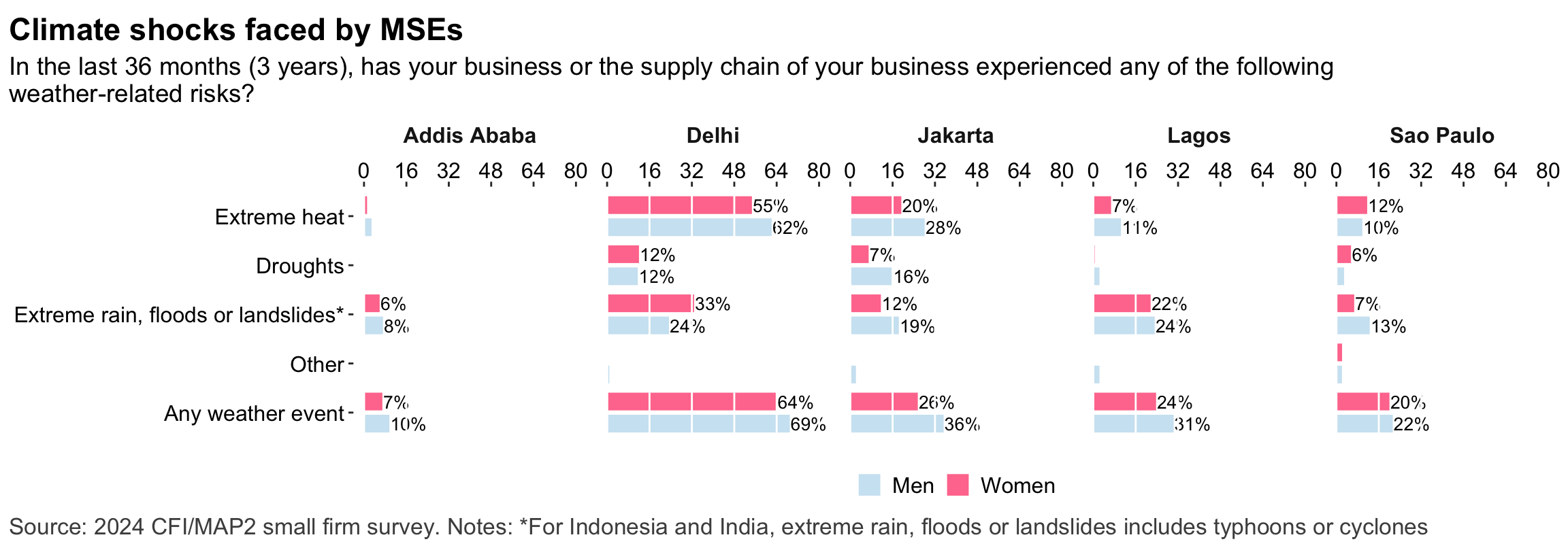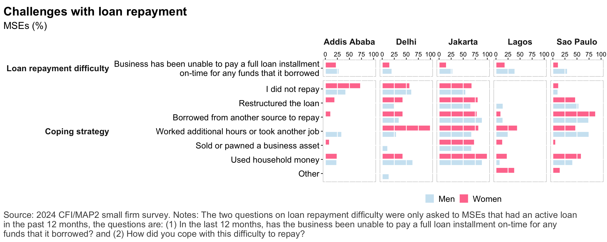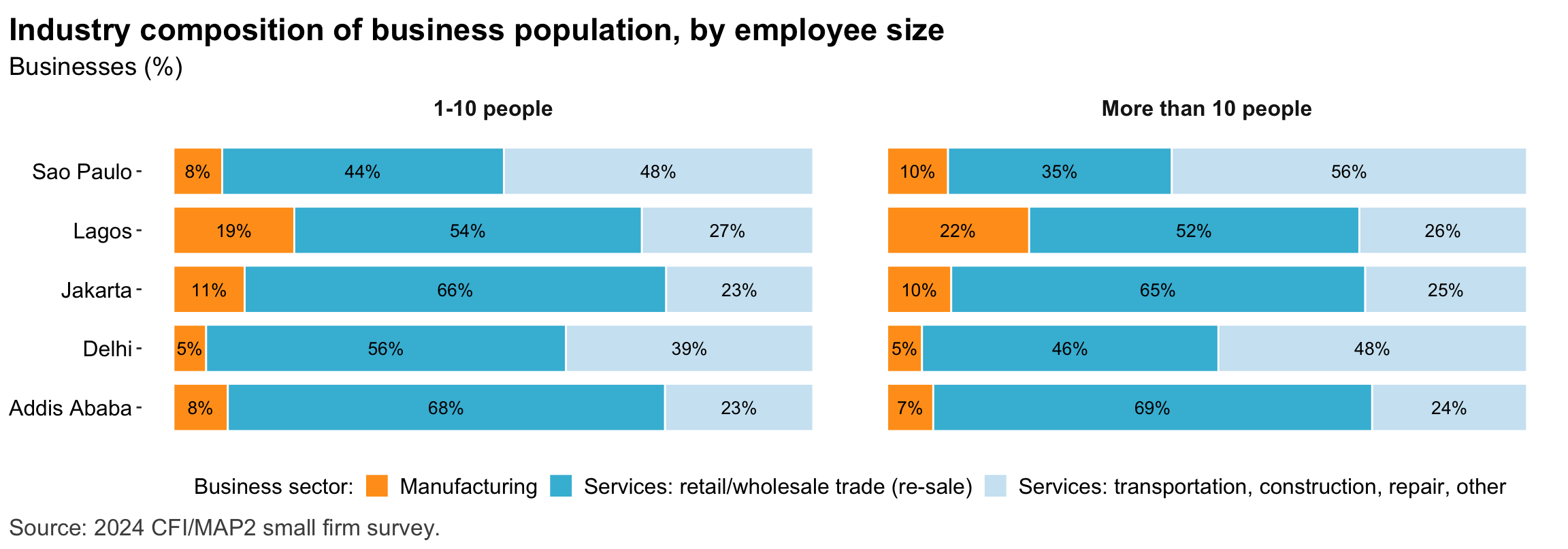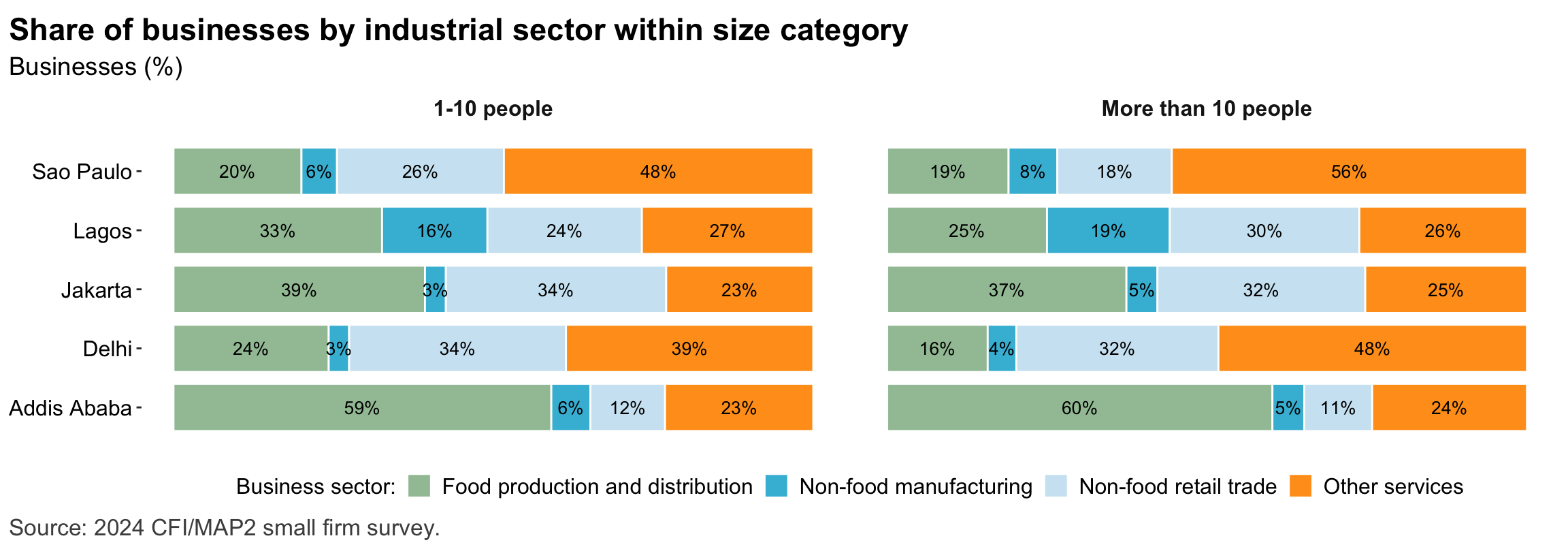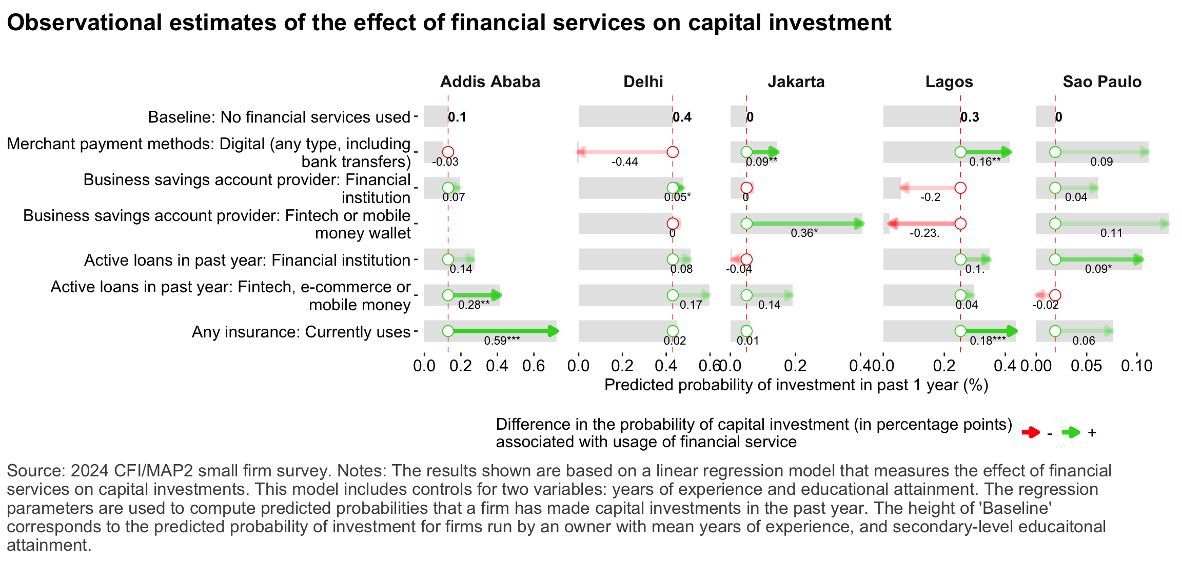 Figure 1: Businesses enumerated by sizeFigure 2: Businesses enumerated by sectorFigure 3: Businesses enumerated by sectorFigure 4: Sample characteristicsFigure 5: MSEs by sector of productionFigure 6: MSE revenues and productivityFigure 7: Changes in MSE outcomes in past yearFigure 8: MSE owner characteristicsFigure 9: Pyschographic characrteristics of SME owners or managers, by genderFigure 10: Pyschographic characrteristics of SME owners or managers, by genderFigure 11: Correlation between owner’s motivations, goals and attitudes to riskFigure 12: Summary measures of financial accessFigure 13: Access to connectivity and devicesFigure 14: Drivers of overall technology adoptionFigure 15: Applications of digital technologyFigure 16: Depth of digital technology adoptionFigure 17: Non-financial digital technology adoption factorsFigure 18: Relationship between internet-connectivity and firm-level labor productivityFigure 19: Relationship between digital technology and firm-level labor productivityFigure 20: Relationship between general digital technology adoption and subjective growthFigure 21: Relationship between digital technology adoption and firm-level labor productivityFigure 22: Relationship between digital technology adoption and firm-level labor productivityFigure 23: Relationship between depth of digital technology adoption and firm-level labor productivityFigure 24: Summary measures of financial accessFigure 25: Financical accounts and savingsFigure 26: Merchant paymentsFigure 27: Demand for creditFigure 28: Barriers to creditFigure 29: Impacts of digital financial servicesFigure 30: Insurance usageFigure 31: Relationship between financial services and firm-level labor productivityFigure 32: Relationship between financial services and financial resilienceFigure 33: Relationship between financial services and firm growthFigure 34: Relationship between financial services and capital investmentFigure 35: Challenges with loan repaymentFigure 36: Consumer protection issuesFigure 37: Consumer protection issuesFigure 38: Predictors of consumer protection risks: DemographicsFigure 39: Predictors of exposure to consumer risks: Breadth of digital technologiesFigure 40: Predictors of exposure to consumer risks: Non-financial digital technologiesFigure 41: Predictors of exposure to consumer risks: Financial servicesFigure 42: Relationship between depth of digital technology adoption and exposure to consumer protection risksFigure 43: Risks: GeneralFigure 44: Risks: ClimateFigure 45: Risks: ImpactsFigure 46: Financial resilienceFigure 47: Non-financial dimensions of business resilienceFigure 48: Access to connectivity and devicesFigure 49: Relationship between prior exposure to weather shock and investment in adaptationFigure 50: Relationship between prior exposure to weather shock and use of financial servicesFigure 51: Relationship between prior exposure to weather shock and use of digital toolsFigure 52: Relationship between overall technology adoption & resilienceFigure 53: MSEs by premises typeFigure 54: MSES by sector